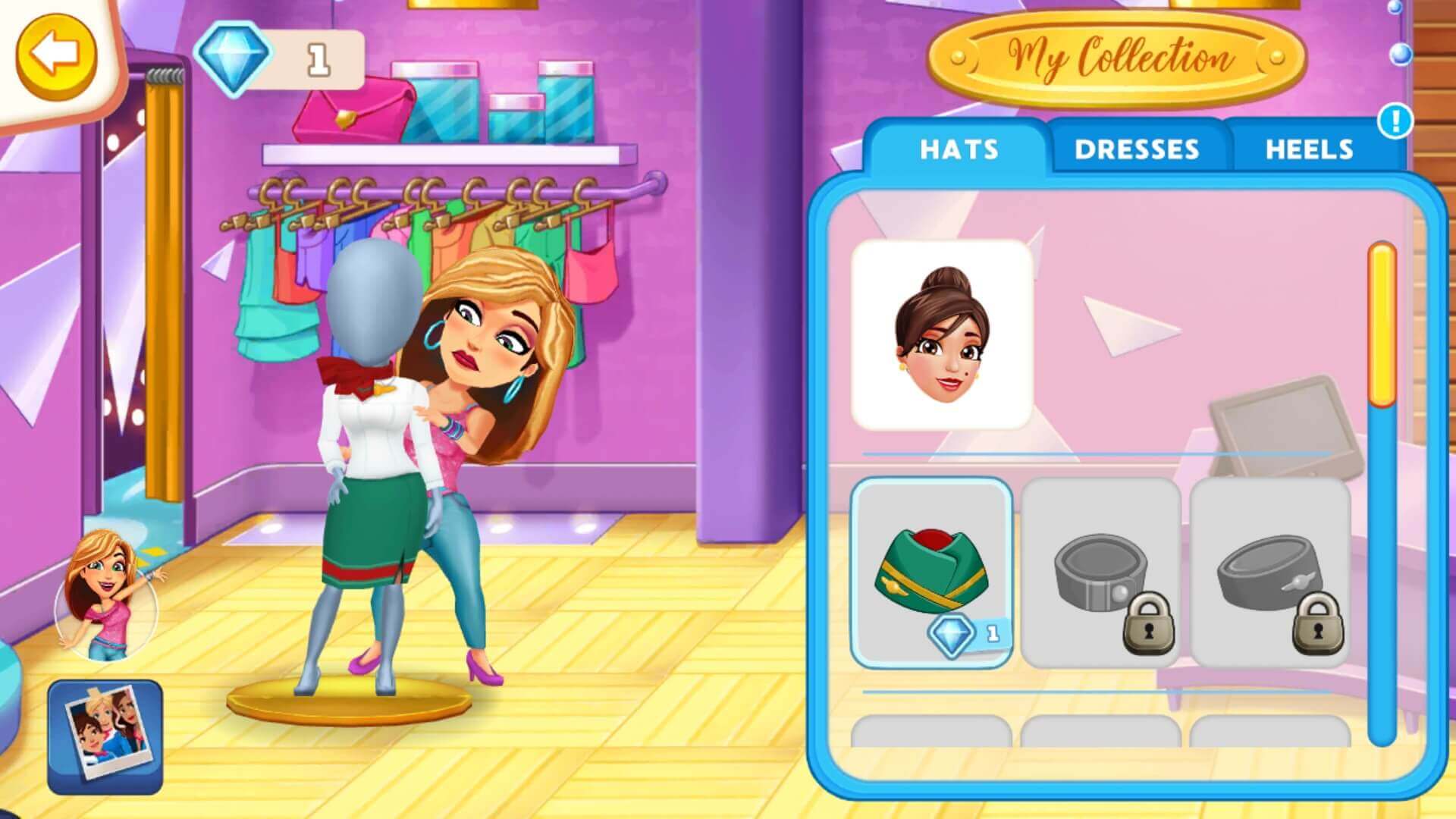 Pamela, one of your fellow flight attendants will introduce you to a friend of hers called Angela, who is a fashion designer. Liaise with Angela to design new outfits and give the flight crew a fresh new look in each place you visit. You can use diamonds to purchase the assorted Hats, Dresses, and Heels that she has made once you unlocked them by playing the story.