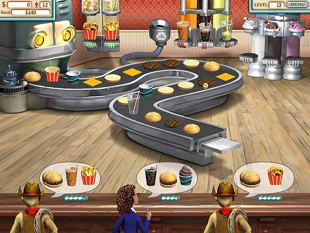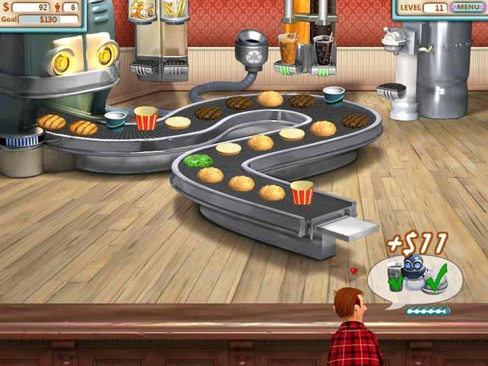 The game features some really cool power ups to help you during the game play. Use the burger bot to make big orders in a jiffy. Unlock the speed power up to operate the machines faster, happy power up to keep your customers happy and money power up to earn additional dollars in each level.